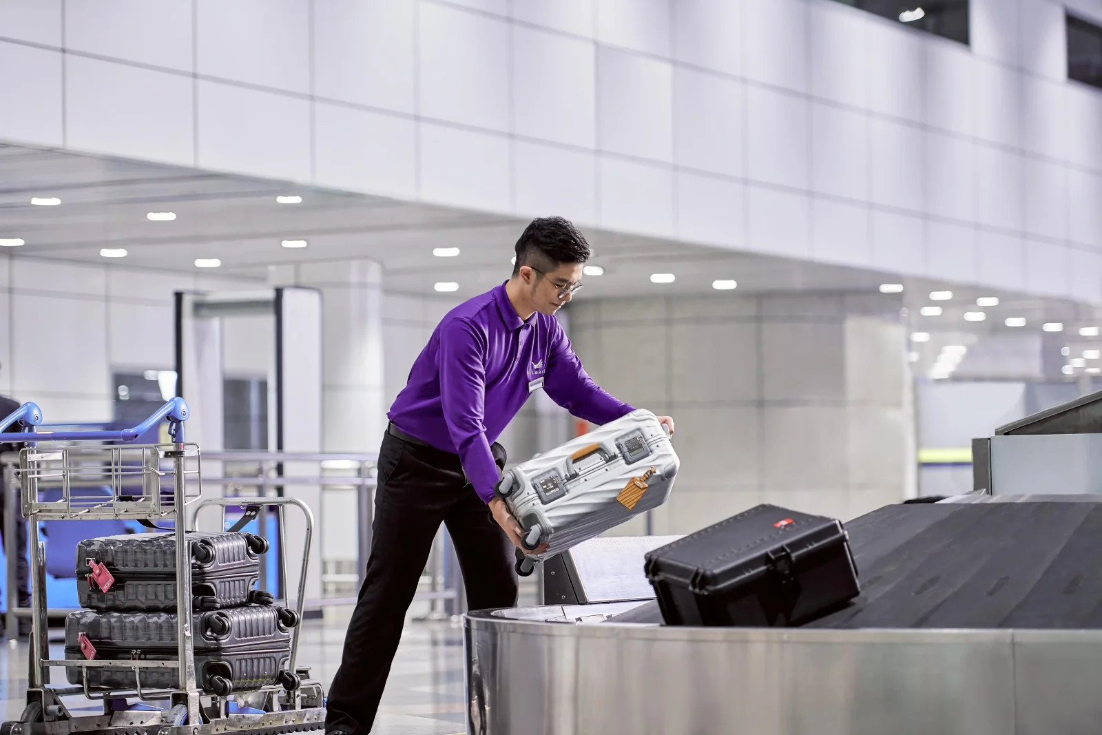 • Luggage is carried to the check-in counter by a porter.