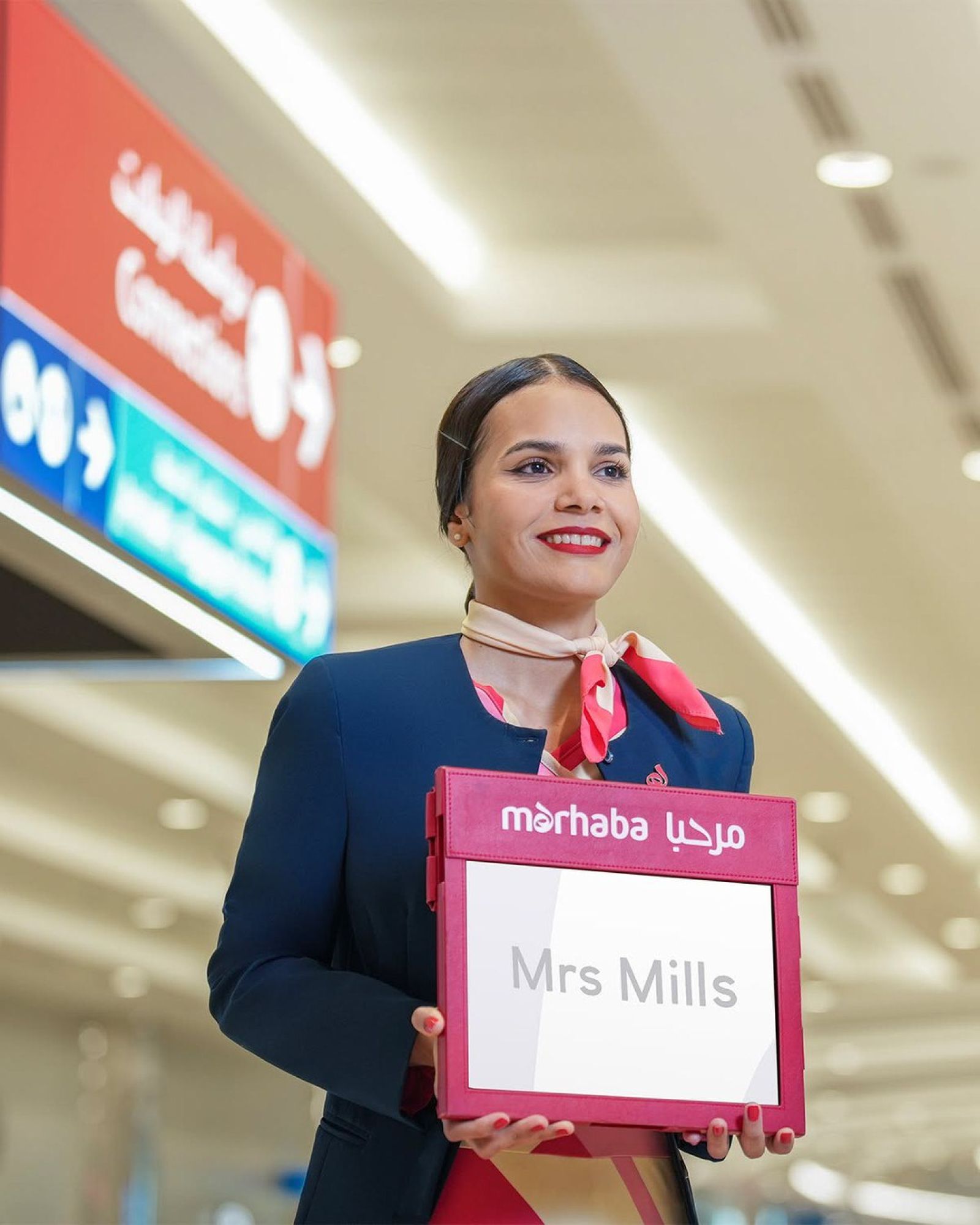 Be greeted at the aircraft exit with a personalized sign by a marhaba representative and escorted through the airport;